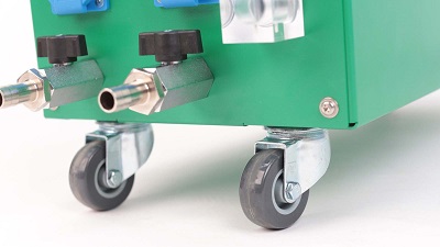 Den er derfor perfekt til at holde støjniveauet lavt på arbejdspladsen. Ideel til svejsning af konstruktioner med de højeste krav til renlighed og kvalitet. Gennem sin rektangulære form integreres kompressoren let i det eksisterende miljø. Udstyret med ekstra ruller er den også velegnet til mobil brug. Det praktiske låg med kant er let anvendeligt som værktøjssystem. Enheden kan drejes rundt, så den passer perfekt ind i ethvert arbejdsbord. Dens integrerede, automatiske sluk-funktion er unik: Hvis det daglige mål er nået, eller hvis der skal være en væsentlig pause i produktionen, forhindrer dens nedkølingstilstand, at de tilsluttede værktøjer overophedes.